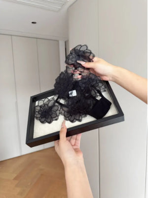 肌を美しく見せる軽やかなチュール。上品さとセクシーさを両立した透け感バランス。