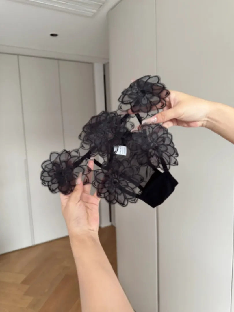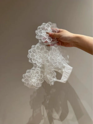 大きめの花びらが重なった立体レース。身に着けた瞬間、気持ちまで華やぐデザイン。