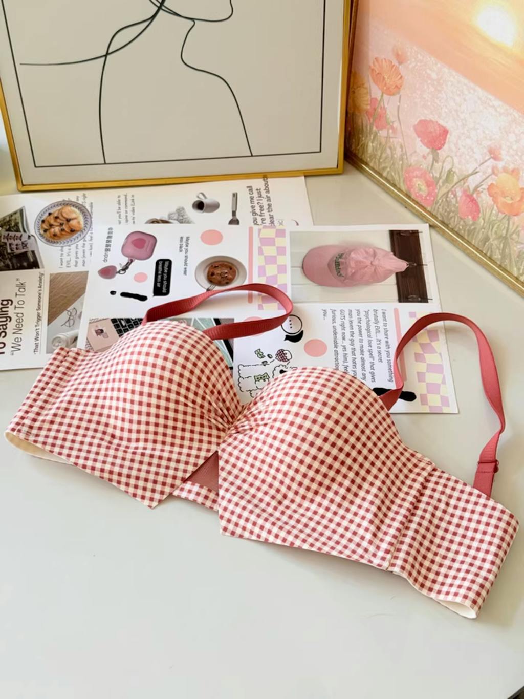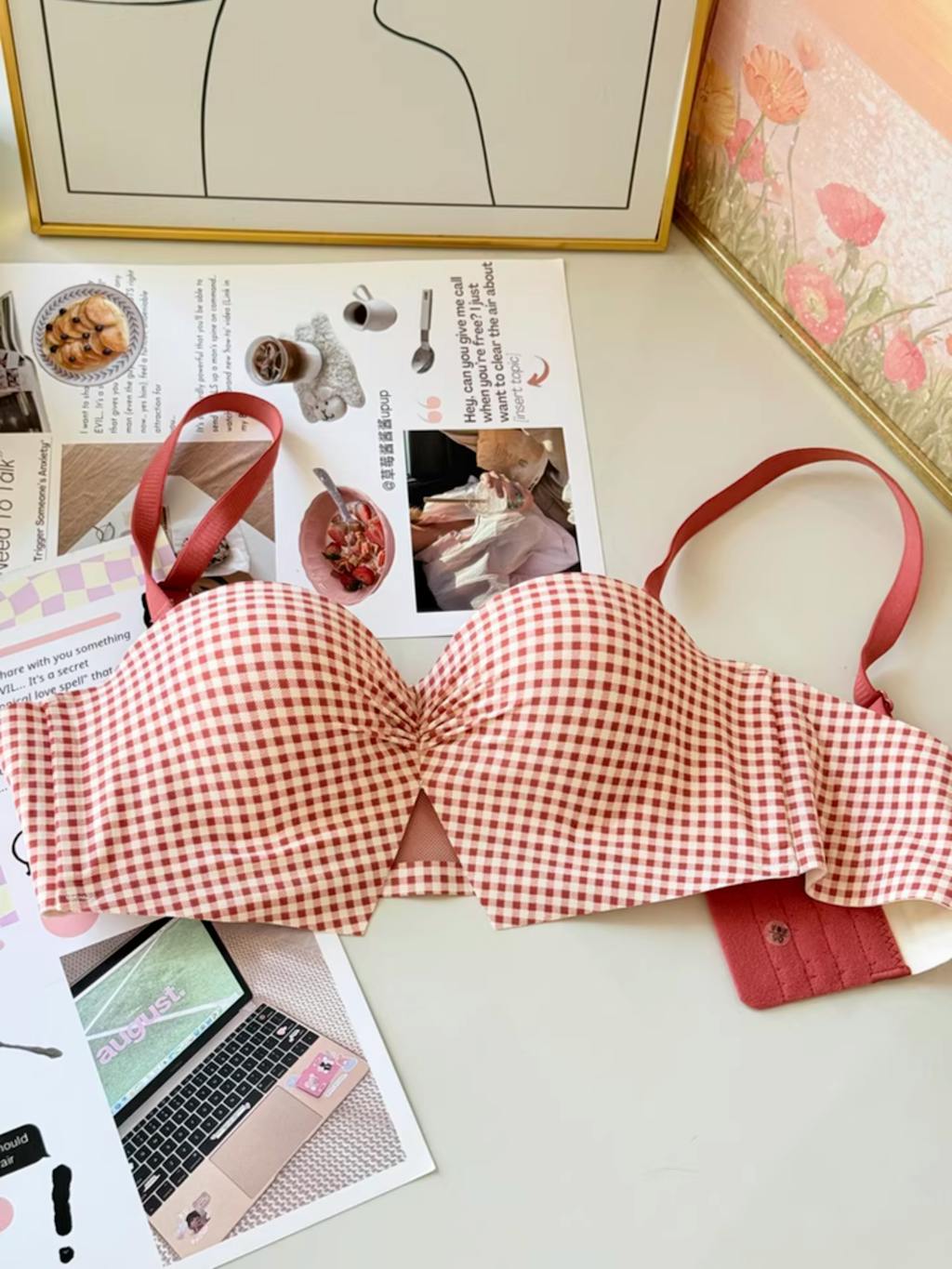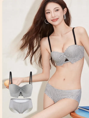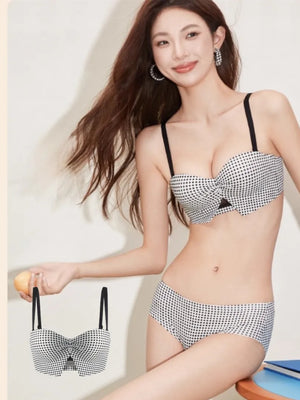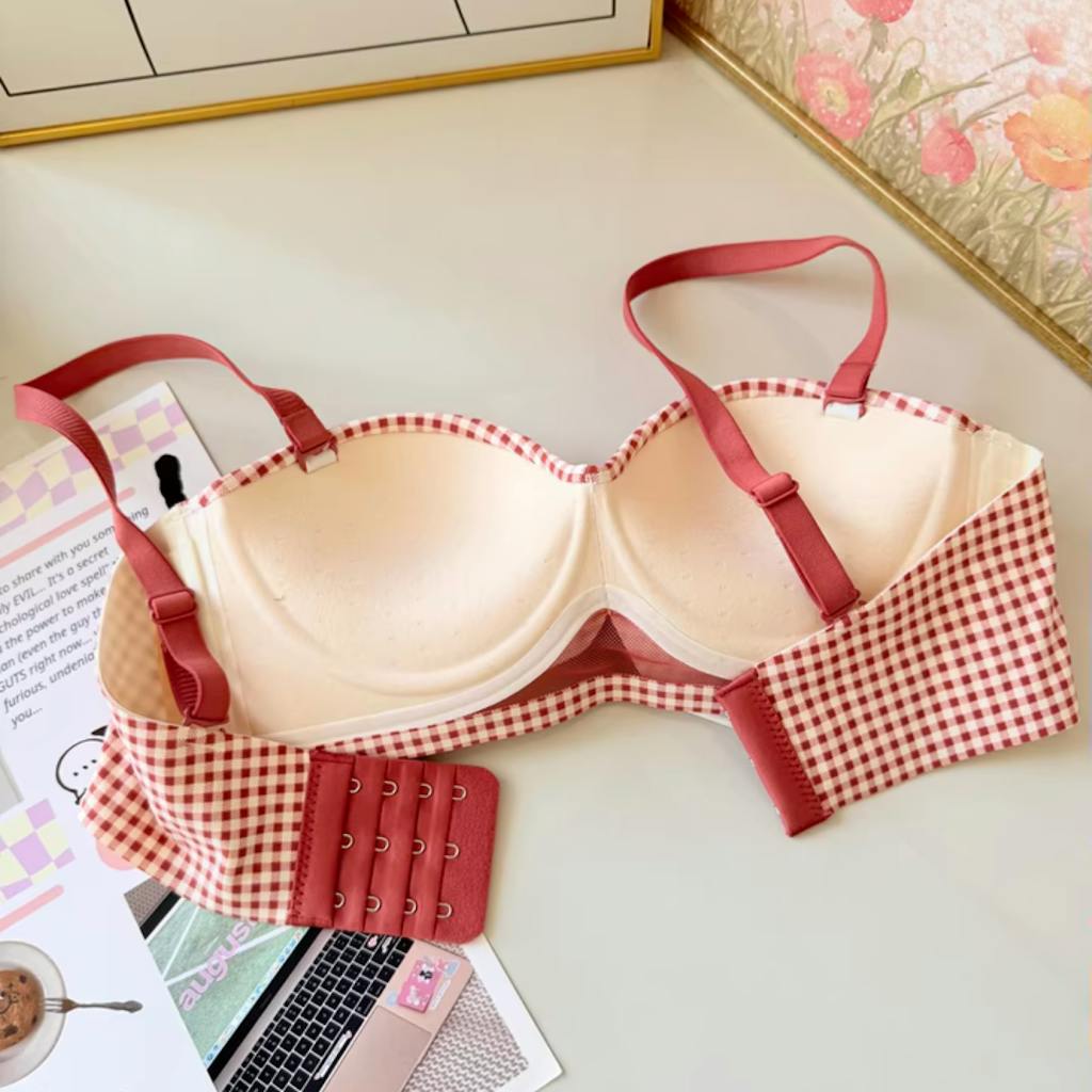 【新作】AeeYaa チェック柄リボンフォルムブラ|ふんわり谷間・脇高美背・ノンワイヤー・2WAYストラップ